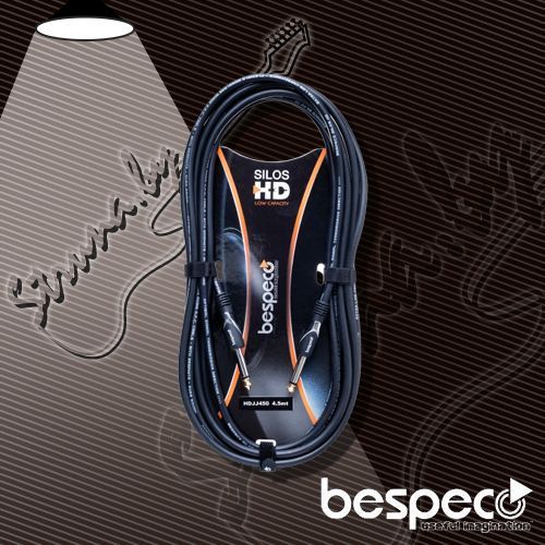 Bespeco HDJJ450 - кабель для гитары, имеет по одному металлическому разъему 1/4" джек моно с каждой стороны. Контакты разъемов покрыты золотом для лучшей проводимости. Длина кабеля - 4,5 метра.